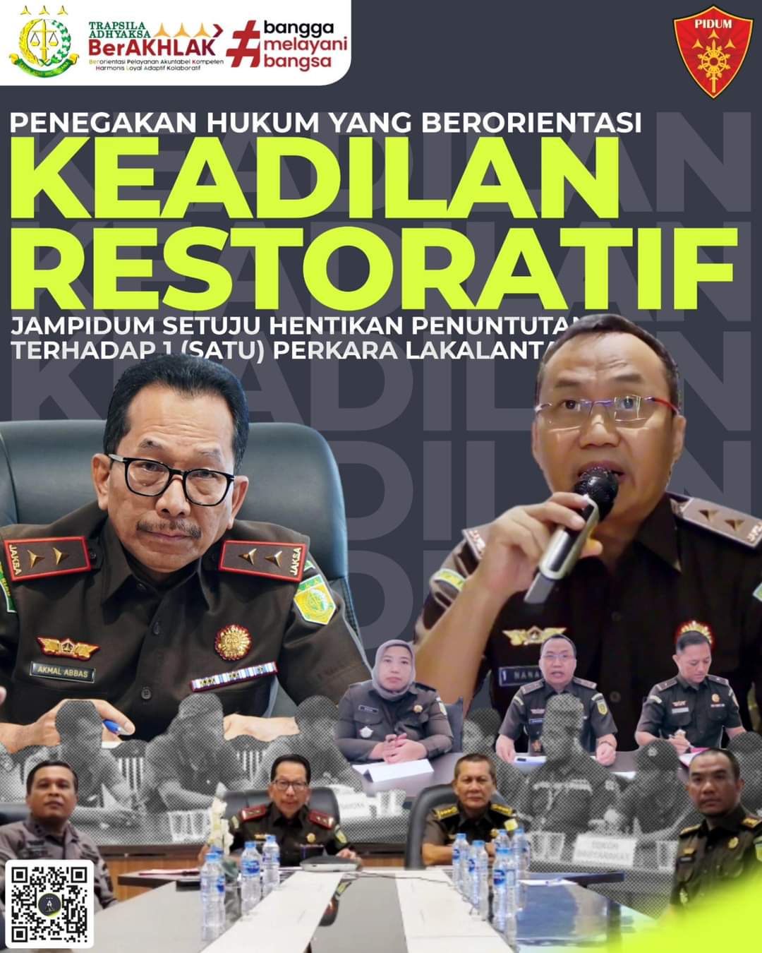 Bahwa pengajuan 1 (satu) perkara untuk dilakukan penghentian penuntutan berdasarkan keadilan Restoratif Justice disetujui oleh Jaksa Agung Muda Tindak Pidana Umum Kejaksaan Agung RI dengan pertimbangan telah memenuhi Pasal 5 Peraturan Kejaksaan Republik Indonesia Nomor : 15 Tahun 2020 dan Surat Edaran Jampidum Nomor : 01/E/EJP/02/2022 Tanggal 10 Februari 2022 tentang Pelaksanaan Penghentian Penuntutan Berdasarkan Keadilan Restoratif sebagai perwujudan kepastian hukum.