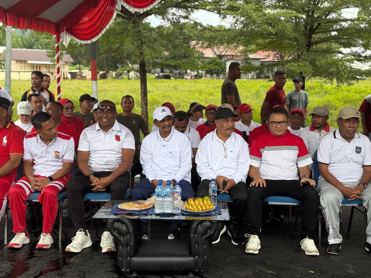 Kegiatan yang berlangsung di Tugu Ina Ama Piru ini diikuti oleh jajaran Forkopimda, pimpinan perangkat daerah, instansi vertikal, organisasi masyarakat. Kemeriahan acara semakin terasa dengan antusiasme peserta yang mengenakan atribut merah putih dan mengikuti senam dengan penuh semangat.