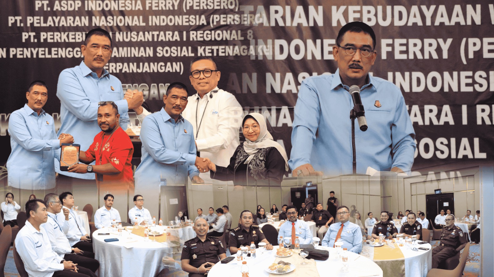 Turut hadir, Kepala Persero PT. Pelni Cabang Ambon Marthin Heryanto, Kepala Kantor BPJS Ketenagakerjaan Wilayah Sulawesi Maluku Mintje Wattu, Kepala Balai Pelestarian Kebudayaan Wilayah XX Dody Wiranto, S.S.,M.Hum, Senior GM PT. ASDP Indonesia Ferry (Persero) Regional IV Zulpidon dan Region Head Regional 8 PT. Perkebunan Nusantara I Maalun Lamau. (Hermanto)
