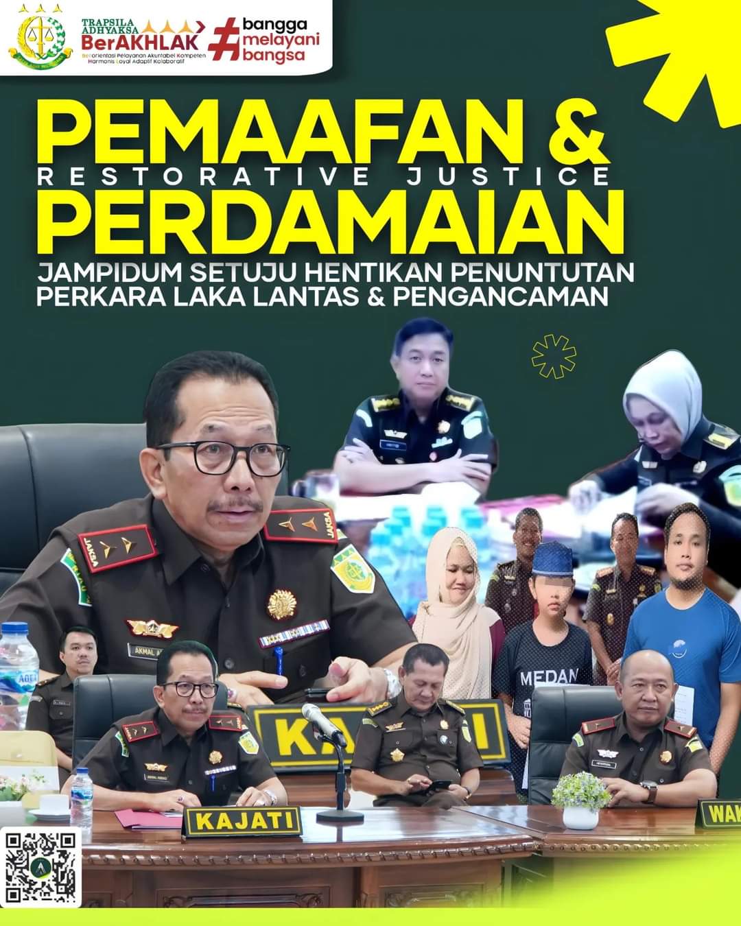 Bahwa pengajuan 2 (dua) perkara untuk dilakukan penghentian penuntutan berdasarkan keadilan Restoratif Justice disetujui oleh Jaksa Agung Muda Tindak Pidana Umum Kejaksaan Agung RI dengan pertimbangan telah memenuhi Pasal 5 Peraturan Kejaksaan Republik Indonesia Nomor : 15 Tahun 2020 dan Surat Edaran Jampidum Nomor : 01/E/EJP/02/2022 Tanggal 10 Februari 2022 tentang Pelaksanaan Penghentian Penuntutan Berdasarkan Keadilan Restoratif sebagai perwujudan kepastian hukum.